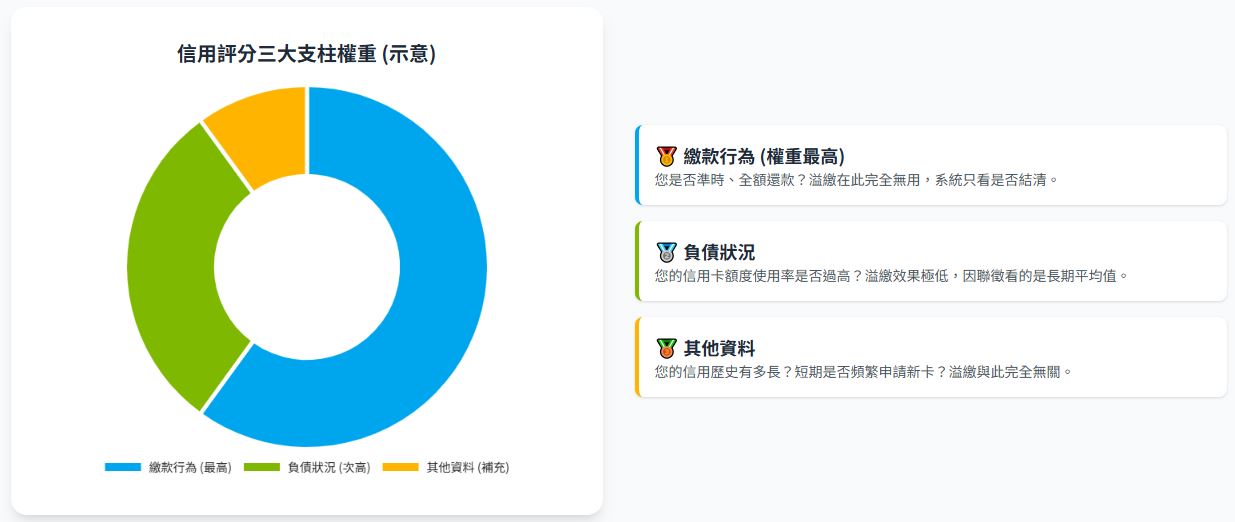 要理解為何溢繳無法養信用,我們必須先換位思考,戴上聯徵中心的「眼鏡」,看看它究竟關心什麼。聯徵中心的信用評分模型是一套複雜的演算法,它評估的是你未來一年償還債務的「可能性」,而不是你對銀行有多「大方」。它主要透過三大支柱來建構你的信用樣貌: