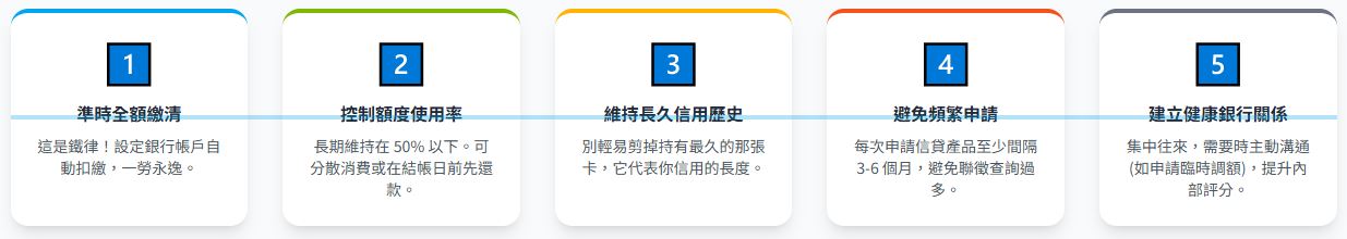 當你掌握了前兩大基石後,接下來的三个法則,將幫助你把信用資產打造得更穩固、更具價值。