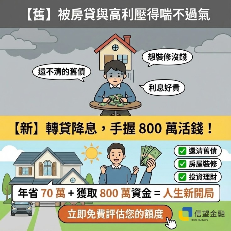 省下高額利息 + 獲取大筆資金 = 人生重新開局
