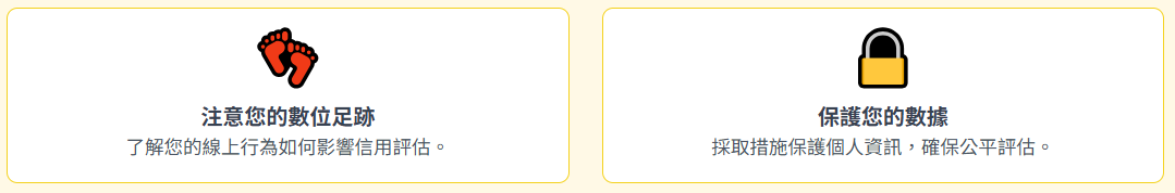 | 留意日常數位足跡(如消費紀錄、繳費習慣) | AI會參考這些數據來評估風險 |