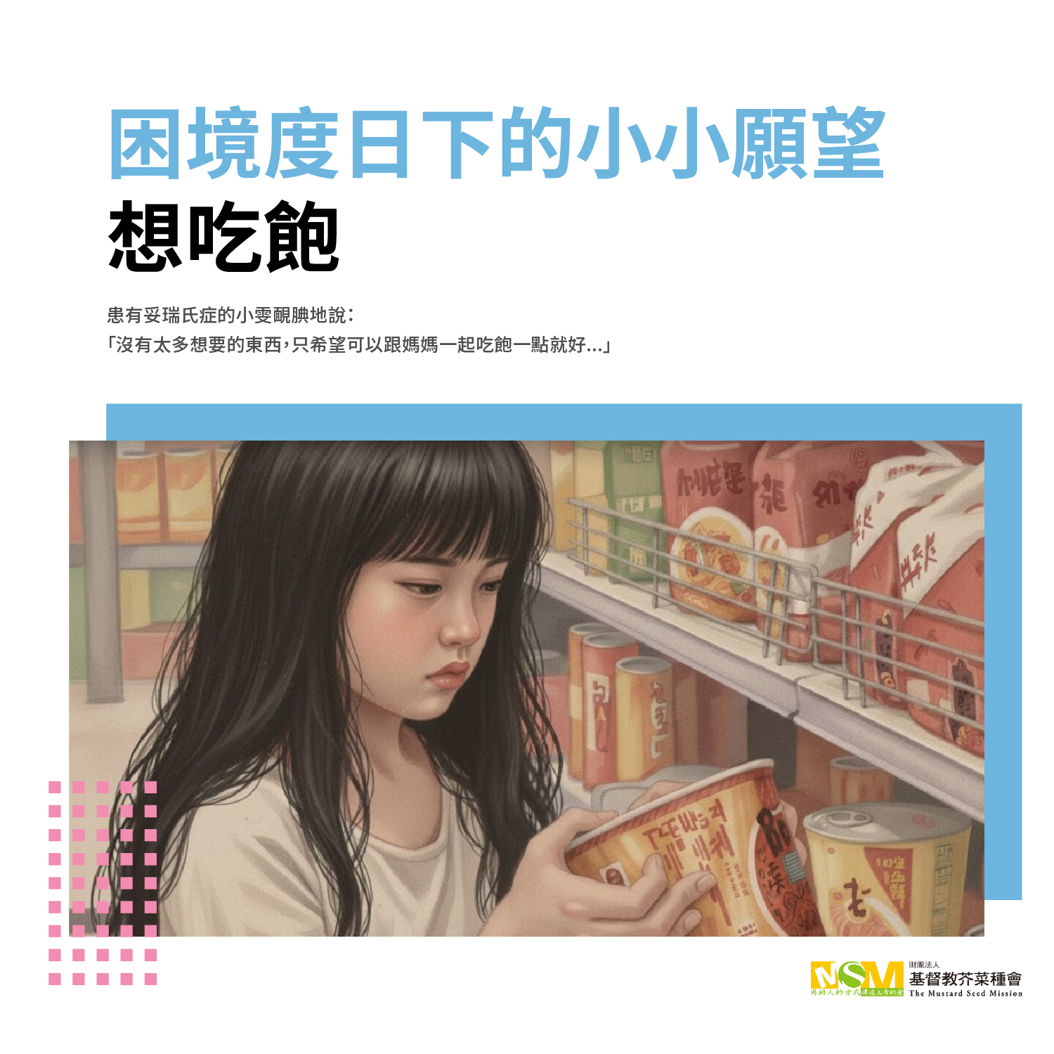 透過芥菜種會第一線人員服務經驗分享,部分孩子在假期間,僅能依賴價格低廉、保存方便的食品維持基本溫飽