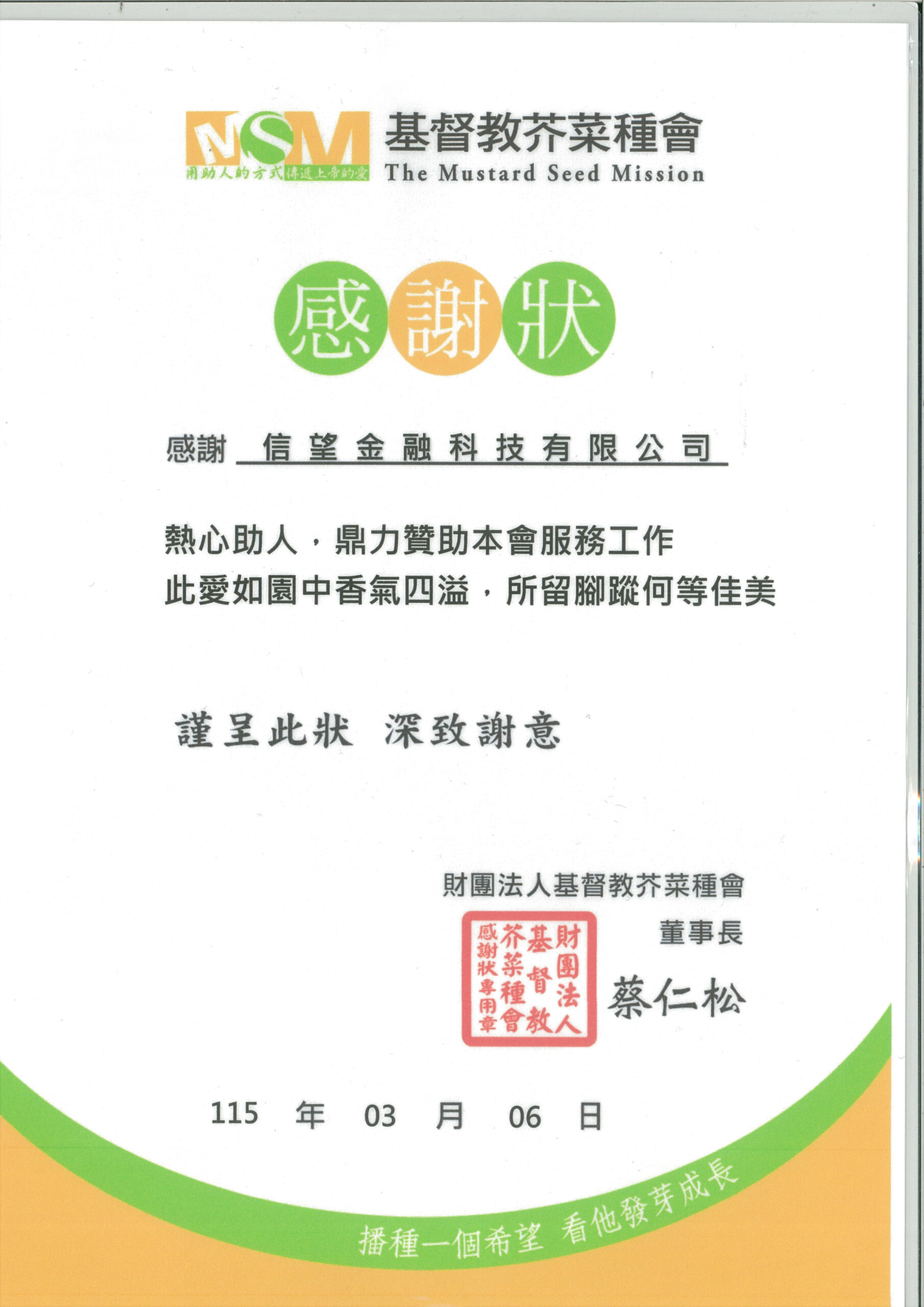 信望金融認為,公益不僅是資源的投入,更包含資訊的傳遞
