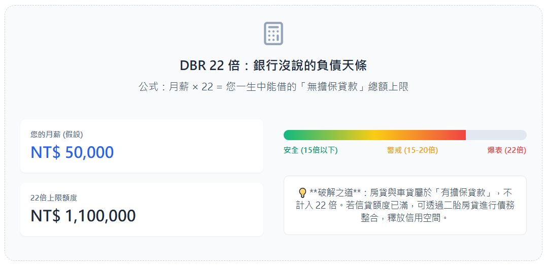 在台灣,無擔保貸款(信貸、信用卡)總額不得超過月薪 22 倍是鐵律。但在 2026 年,許多人因為物價上漲導致開銷增加,不知不覺就逼近紅線。