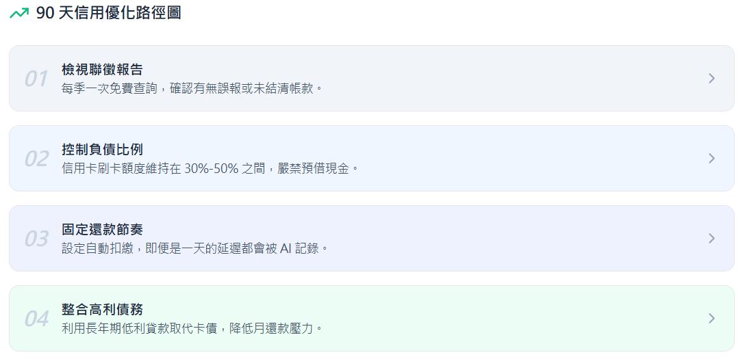 三、AI 時代的信用增長術:90 天內如何讓聯徵分數「起死回生」?